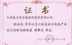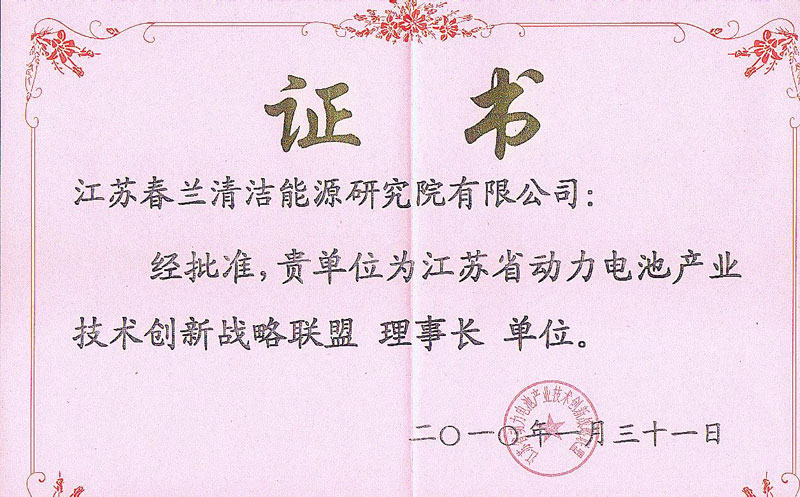 2010年江蘇省動力電池產業(yè)技術創(chuàng)新戰(zhàn)略聯盟理事長單位