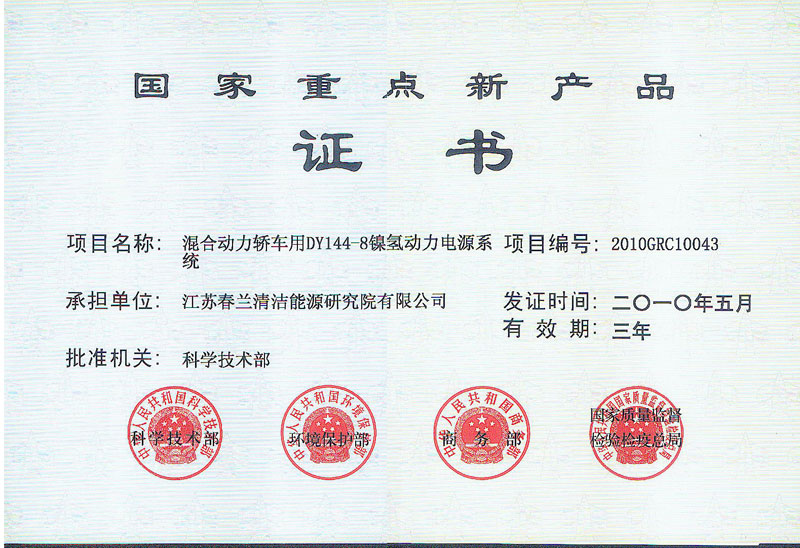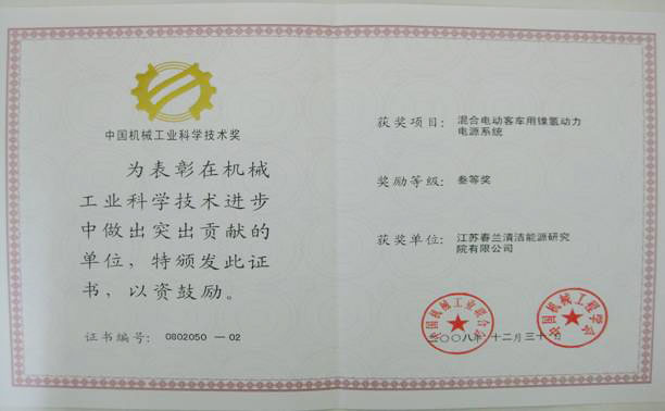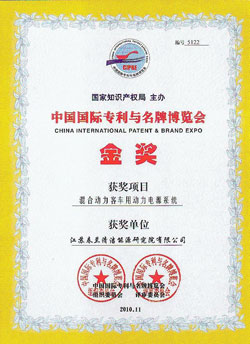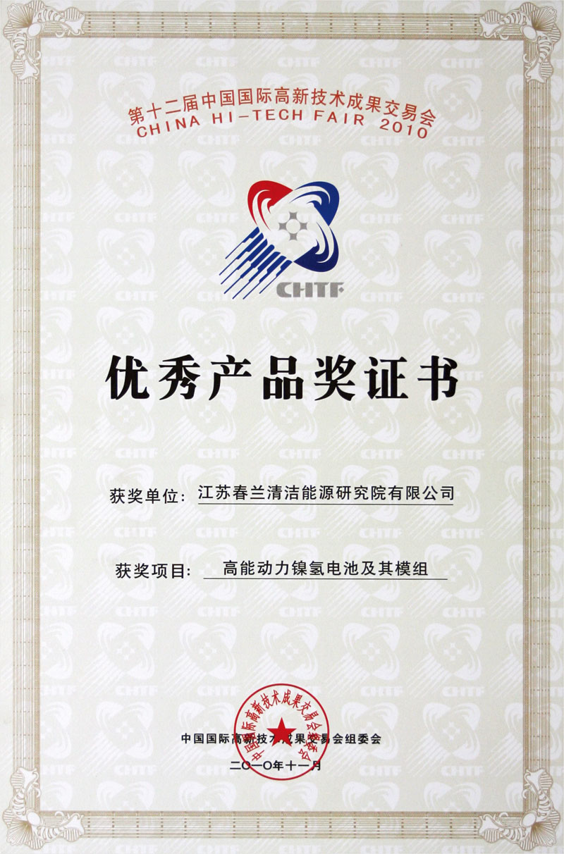 2010年“高能動力鎳氫電池及其模組”獲國家高新技術成果交易會優(yōu)秀產品金獎