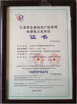 2012年江蘇省知識產權管理標準化創(chuàng)建先進單位