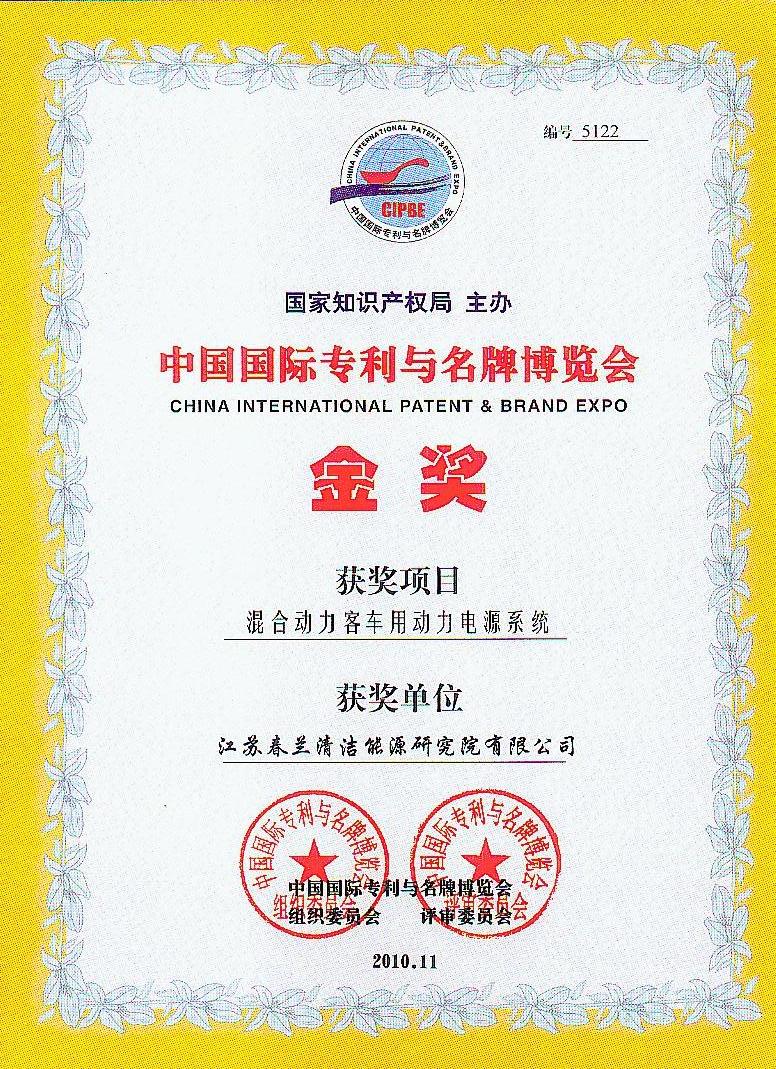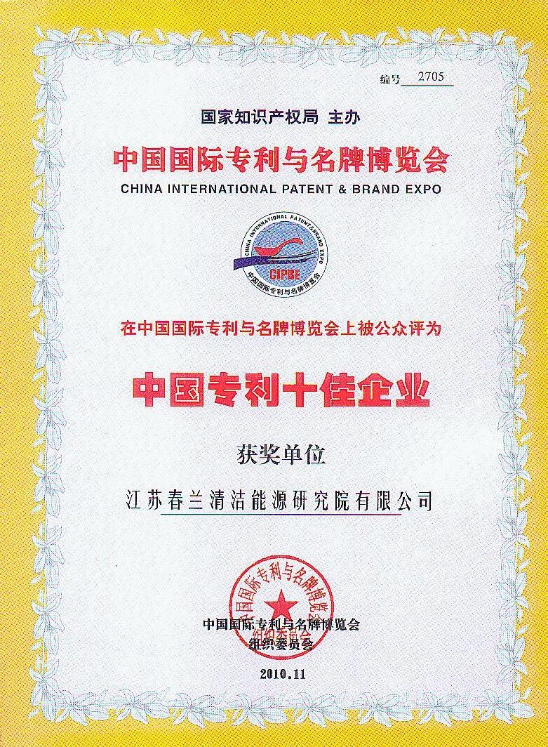 2010年中國專利博覽會金獎、中國專利十佳企業(yè)