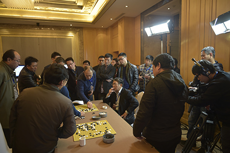 研棋室內(nèi)研究對局的中國圍棋協(xié)會領(lǐng)導(dǎo)、棋手和教練