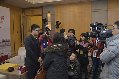 打入本屆春蘭杯決賽的檀嘯受到記者的“包圍”