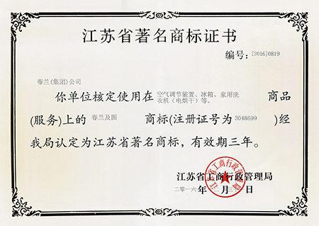 近日,江蘇省工商行政管理局下發(fā)蘇工商標(biāo)〔2016〕323號文《省工商局關(guān)于2016年度認(rèn)定江蘇省著名商標(biāo)的通知》,“春蘭”商標(biāo)再次被認(rèn)定為“江蘇省著名商標(biāo)”。
