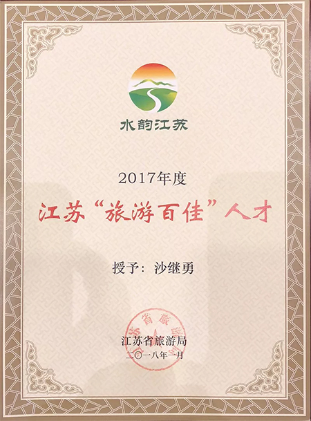 近日,江蘇省旅游局特別頒發(fā)證書,授予泰州賓館有限公司餐飲部副經(jīng)理兼廚師長沙繼勇先生為2017年度江蘇"旅游百佳”人才。