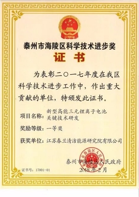 日前,海陵區(qū)科學技術(shù)進步獎評審結(jié)果揭曉,江蘇春蘭清潔能源研究院有限公司承擔的項目——“新型高能三元鋰離子電池關(guān)鍵技術(shù)研發(fā)”喜獲2017年度海陵區(qū)科學技術(shù)進步獎一等獎。 高能動力電池是電動車輛的心臟,國外正在逐步加強對該技術(shù)的壟斷。三元鋰離子電池由于其比能量高、工作電壓高、重量輕等優(yōu)點,正成為電動汽車用電池研究的熱點。 該項目所研制的三元鋰離子電池具有比能量高、壽命長、內(nèi)阻小、大電流充放電效率高、無記憶效應(yīng)等優(yōu)良特性,項目產(chǎn)品通過了省級新產(chǎn)品鑒定,鑒定意見認為,該項目產(chǎn)品在比能量、安全性、一致性和可靠性等方面取得了重要的進展與突破,主要性能指標居國內(nèi)領(lǐng)先水平,在以下方面具有特色和創(chuàng)新性:1)電池能量、功率和效率的平衡技術(shù);2)低內(nèi)阻電池組合技術(shù);3)電池安全性和可靠性技術(shù);4)電池規(guī);a(chǎn)一致性控制技術(shù)。 通過項目實施,完成了具有自主知識產(chǎn)權(quán)的三元鋰離子動力電池關(guān)鍵技術(shù)的研究及規(guī)模化生產(chǎn)的全套工藝技術(shù)研發(fā),形成了系列三元鋰離子電池產(chǎn)品,通過了第三方權(quán)威機構(gòu)強制性檢測,完成了三元鋰離子動力電池管理系統(tǒng)在新能源汽車上的市場推廣、應(yīng)用。