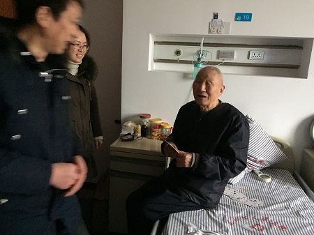 在人民醫(yī)院的病床前,離休干部吳義堂深情地說(shuō):“謝謝組織上還惦記著我,每年都來(lái)看我,我現(xiàn)在的晚年生活很幸福,雖然年老體弱,但心里一直暖暖的!”