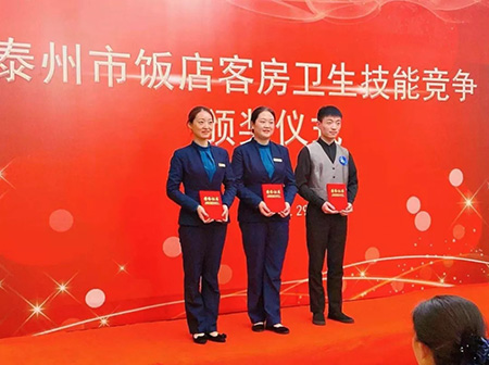 11月29日,由泰州市衛(wèi)生健康委員會、泰州市人力資源和社會保障局和泰州市總工會主辦,泰州市衛(wèi)生監(jiān)督所和泰州市衛(wèi)生監(jiān)督服務(wù)協(xié)會承辦的“泰州市首屆飯店客房衛(wèi)生技能競賽”在泰州市天德湖賓館順利舉辦。春蘭國賓館陳亞斌、泰州賓館張小芹喜獲本次大賽一等獎第一名和第二名,另泰州賓館鮑晶晶、徐兔蘭獲得三等獎。