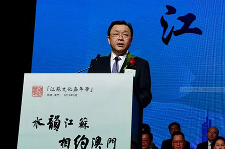 江蘇省委常委、統(tǒng)戰(zhàn)部部長楊岳,澳門社會文化司司長譚俊榮,中央人民政府駐澳門特別行政區(qū)聯(lián)絡辦公室副主任張榮順,外交部駐澳門特派員公署副特派員袁恒革,江蘇省政協(xié)常委、澳門江蘇聯(lián)誼會會長岑展平等出席開幕式。