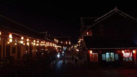 夜晚的老街,大紅燈籠高高掛,呈現(xiàn)出古樸又有些神秘的夜景。