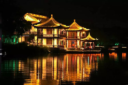 夜晚坐船游鳳城河是一種別致的體驗(yàn),不僅僅能看到鳳城河夜景,每艘船上都有鳳城河沿河簡(jiǎn)介,還可以了解整個(gè)泰州鳳城河的發(fā)展歷史。