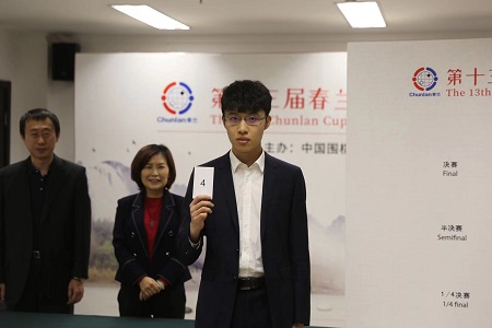 1/4決賽(八強(qiáng)賽)結(jié)束后,中國(guó)圍棋協(xié)會(huì)對(duì)本屆“春蘭杯”半決賽(四強(qiáng)賽)進(jìn)行了抽簽,其對(duì)陣形勢(shì)為: