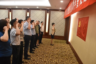 會議氣氛莊重?zé)崃摇V飨_上方懸掛著“春蘭集團慶祝建黨101周年暨黨建工作會議”會標(biāo),后幕正中是鮮艷的中國共產(chǎn)黨黨旗。9時整,會議開始。全體起立,面向黨旗高舉右手,跟隨領(lǐng)誓人用激昂的聲音重溫入黨誓詞。
