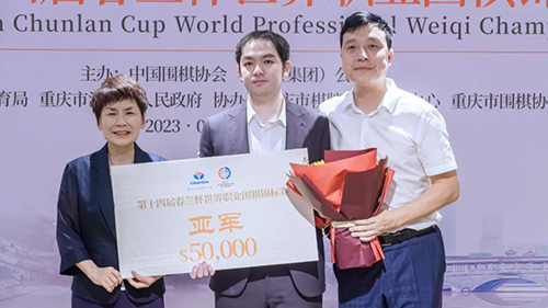 決賽結束后,主辦方在重慶舉行了第14屆“春蘭杯”閉幕式及頒獎儀式,春蘭(集團)公司高級副總裁徐群、中國圍棋協會副主席聶衛(wèi)平,以及中國圍棋協會副主席華學明和重慶圍棋協會會長古力,分別為獲得第14屆“春蘭杯”冠、亞軍的卞相壹九段、李軒豪九段頒發(fā)獎杯和獎金!按禾m杯”總獎金有40萬美元,其中冠軍獎金15萬美元,亞軍獎金5萬美元。