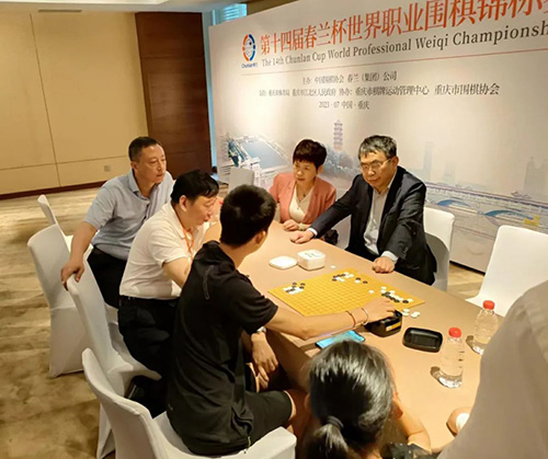“春蘭杯”主辦方及中韓圍棋界對第二輪決賽的賽情高度關注。棋手決賽時,春蘭(集團)公司高級副總裁徐群,中國圍棋協會副主席聶衛(wèi)平、華學明,國家圍棋隊總教練俞斌,韓國安東市圍棋協會長、代表團團長河根律等,在研棋室內反復研究對局,探討各自的得失,預判棋局的走向。