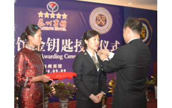 9月9日下午,世界金鑰匙組織中國區(qū)在春蘭迎賓館舉行了隆重的授徽儀式。該組織中國區(qū)秘書長助理王繼濤先生,宣讀了世界金鑰匙組織中國區(qū)關于泰州賓館大堂經(jīng)理趙金蓮女士為正式會員的批準書;中國區(qū)副秘書長林志釗先生,親手給趙金蓮戴上了世界金鑰匙組織徽章。泰州市旅游局、泰州賓館等單位的相關領導,以及新聞記者近一百多人出席了授徽儀式。 “金鑰匙”服務,最早是法國在1929年率先提出的,他們將“客人委托、酒店代辦”式的個性化服務上升為一種理念,并成立了飯店業(yè)委托代辦的組織———金鑰匙組織!敖痂匙”是飯店綜合服務的總代理,被譽為“萬能博士”,其佩戴的兩把交叉的金鑰匙,意味著盡善盡美的服務,也象征著為客人解決一切難題。經(jīng)過近80年的發(fā)展,世界金鑰匙組織已有34個國家和地區(qū)參加,擁有5000多個成員。中國金鑰匙組織誕生于1995年,是世界金鑰匙組織的第31個成員國團體會員,目前已發(fā)展了168個城市、1000多家高級酒店,1600多名會員。每一個“金鑰匙”會員都必須定期接受嚴格的培訓和考核。 林志釗在致辭中說,世界金鑰匙組織中國區(qū)十分高興接納趙金蓮女士為其正式會員,因為,這意味著“金鑰匙”服務網(wǎng)絡已延伸至泰州。同時,泰州賓館在蘇中地區(qū)的定位,以及其五星級地位,使之具備了成為世界金鑰匙組織成員的基本素質。更重要的是,泰州賓館所倡導的國際酒店服務理念,與金鑰匙的服務訴求不謀而合,這對拓展“金鑰匙”的服務網(wǎng)絡、弘揚“金鑰匙”的服務精神都有著深遠的意義。 趙金蓮激動地表示,成為世界金鑰匙組織會員,是榮譽,更是一種責任。她要一如既往地將“金鑰匙”服務理念貫穿于日常服務之中,讓自己這把“金鑰匙”在泰州賓館閃閃發(fā)光。 泰州賓館黨總支書記侯永余說,趙金蓮女士成為世界金鑰匙組織中國區(qū)的正式會員,既是泰州賓館的驕傲,也是春蘭集團及泰州市的驕傲。他們要用這把“金鑰匙”,打開泰州賓館最優(yōu)化服務之門,打開每名員工最佳績效和無窮潛力之門,打開泰州城市的最美形象之門,為春蘭,為泰州服務業(yè)的發(fā)展作出更大貢獻。 據(jù)了解,“金鑰匙”已成為泰州酒店(賓館)服務檔次的體現(xiàn),高檔酒店(賓館)都以擁有“金鑰匙”為榮。泰州賓館員工被世界金鑰匙組織吸納為會員,不僅為泰州賓館增添了光彩,而且對“金鑰匙”服務理念在泰州酒店(賓館)業(yè)的普及,促進其整體服務水準的更大提升,起到了推動作用。(孫廣明)