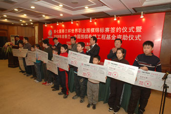 對來自貴州的馬超然來說,2008年2月26日是他一生都不會忘記的日子:這一天,他們從受雪災(zāi)影響交通不便的貴陽第一次來到首都北京,第一次驚喜地獲得了由春蘭集團(tuán)提供的5000元資助金。 “這是我做夢也沒想到的事情!边@位年僅8歲的貴州小棋手,在“春蘭—中國‘圍棋希望工程’基金”2008年資助儀式上激動地說。他同時代表今年喜獲春蘭資助金的12名小棋手表示,要把對春蘭集團(tuán)的感恩,化為學(xué)習(xí)的動力,不斷努力,提高成績,爭取不久的將來參加春蘭杯比賽。 據(jù)了解,除馬超然外,今年喜獲春蘭資助金的小棋手中,還有來自雪災(zāi)重災(zāi)區(qū)貴州年僅6歲的王晨光,以及來自湖南的11歲的梁洪章和13歲的馬如龍。另外8名少年棋手,分別來自浙江、北京、天津、上海和內(nèi)蒙等省、市、自治區(qū),其平均年齡不足11歲,段位最高的是職業(yè)初段,最低為業(yè)余6段。至此,“春蘭—中國‘圍棋希望工程’基金”經(jīng)過連續(xù)六年的資助,目前已有近百名從全國各地遴選出來的優(yōu)秀少年圍棋選手受益。 另據(jù)中國棋院相關(guān)人士介紹,在春蘭持續(xù)不斷的資助,以及這種資助所產(chǎn)生的激勵下,國內(nèi)圍棋界少年棋手的成長十分迅速,現(xiàn)已形成青藍(lán)相繼、薪火傳承的多個“梯隊”。不少種子選手如近年獲得春蘭資助的小棋手廖行文、范蔚青、王祥云、樸文堯、李喆等,在國際或全國各類圍棋比賽中相繼奪得大獎,顯現(xiàn)出令人驚喜的潛力。 有報道稱,春蘭這種熱心公益,以構(gòu)建和諧社會為己任的責(zé)任感,以及長期致力于推動中國體育與文化事業(yè)進(jìn)一步發(fā)展的善舉,贏得了社會各界的廣泛贊譽(yù),中央電視臺及各大主流媒體紛紛予以報道,盛贊春蘭這種的“大愛”精神。 國家體育總局棋牌運(yùn)動管理中心主任劉思明、中國棋院院長華以剛、中國圍棋協(xié)會主席王汝南,以及春蘭集團(tuán)首席執(zhí)行官助理劉亞夫、春蘭集團(tuán)新聞處處長黃文豹等出席了本次基金資助儀式。 劉思明首先感謝春蘭對圍棋事業(yè)一如既往的支持,他希望所有受到春蘭資助的小棋手,不辜負(fù)春蘭集團(tuán)的厚望,刻苦學(xué)習(xí)、自強(qiáng)不息,爭取全面發(fā)展,早成大器。他同時希望社會各界能象春蘭一樣,進(jìn)一步關(guān)心、支持中國圍棋和中國體育事業(yè),為推動中國體育事業(yè)的不斷發(fā)展作出新的、更大的貢獻(xiàn)。(孫廣明)